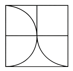 • Geometric drawing of an outline square with sections divided by vertical, horizontal, and circle lines.